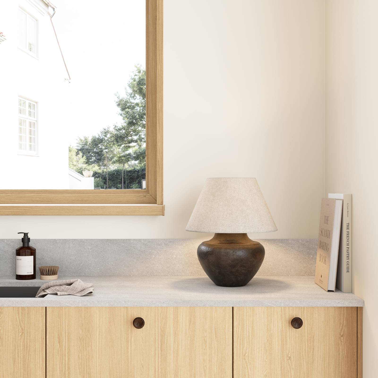Tip: En glat ensfarvet laminatbordplade er mere sart end en ru model, der changerer i farverne.